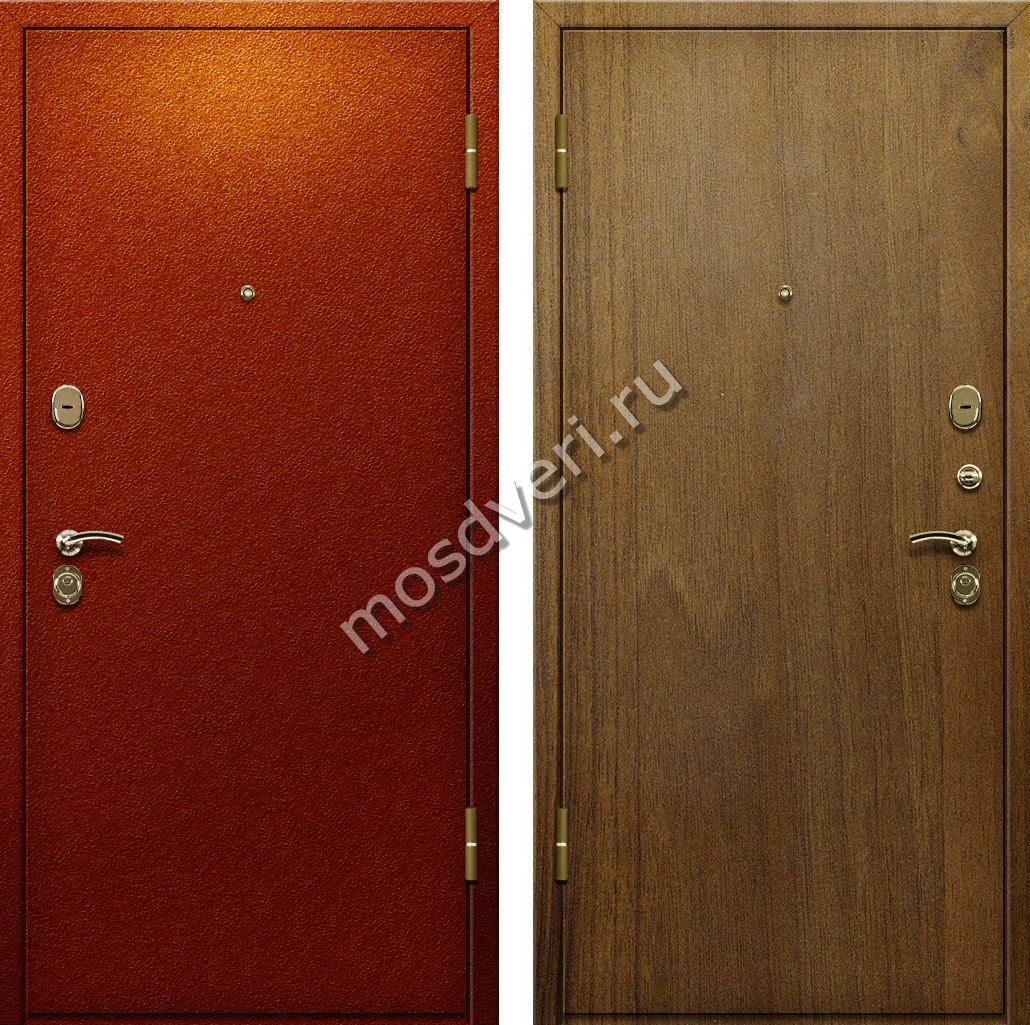 Дверь порошок красного цвета и ламинат под дуб на внутренней стороне в Армавире