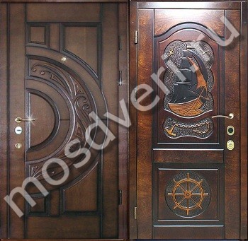 Элитная дверь в квартиру с отделкой массивом и фигурной резкой в Армавире